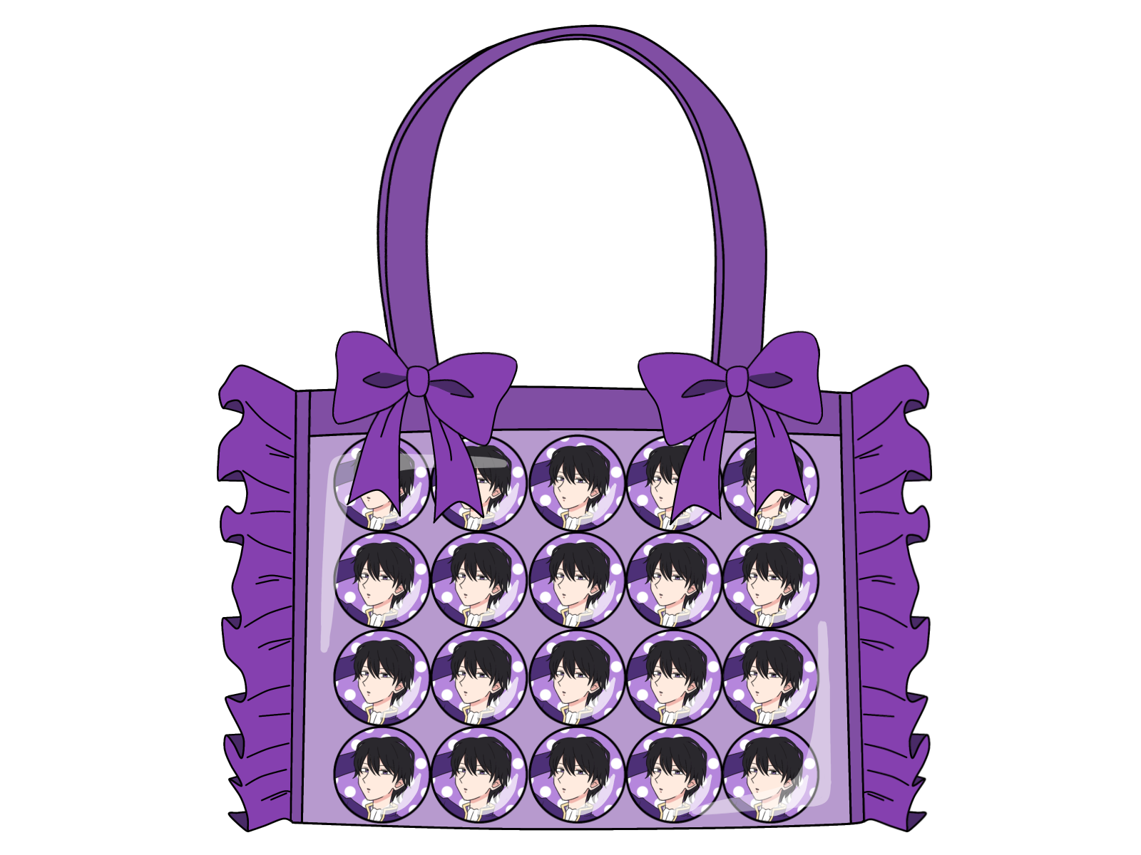 主に缶バッジやキーホルダー、アクリルスタンドなどでバッグを装飾して、透明なポケット部分にそれらのグッズを並べてデコレーションするのが一般的なようです。