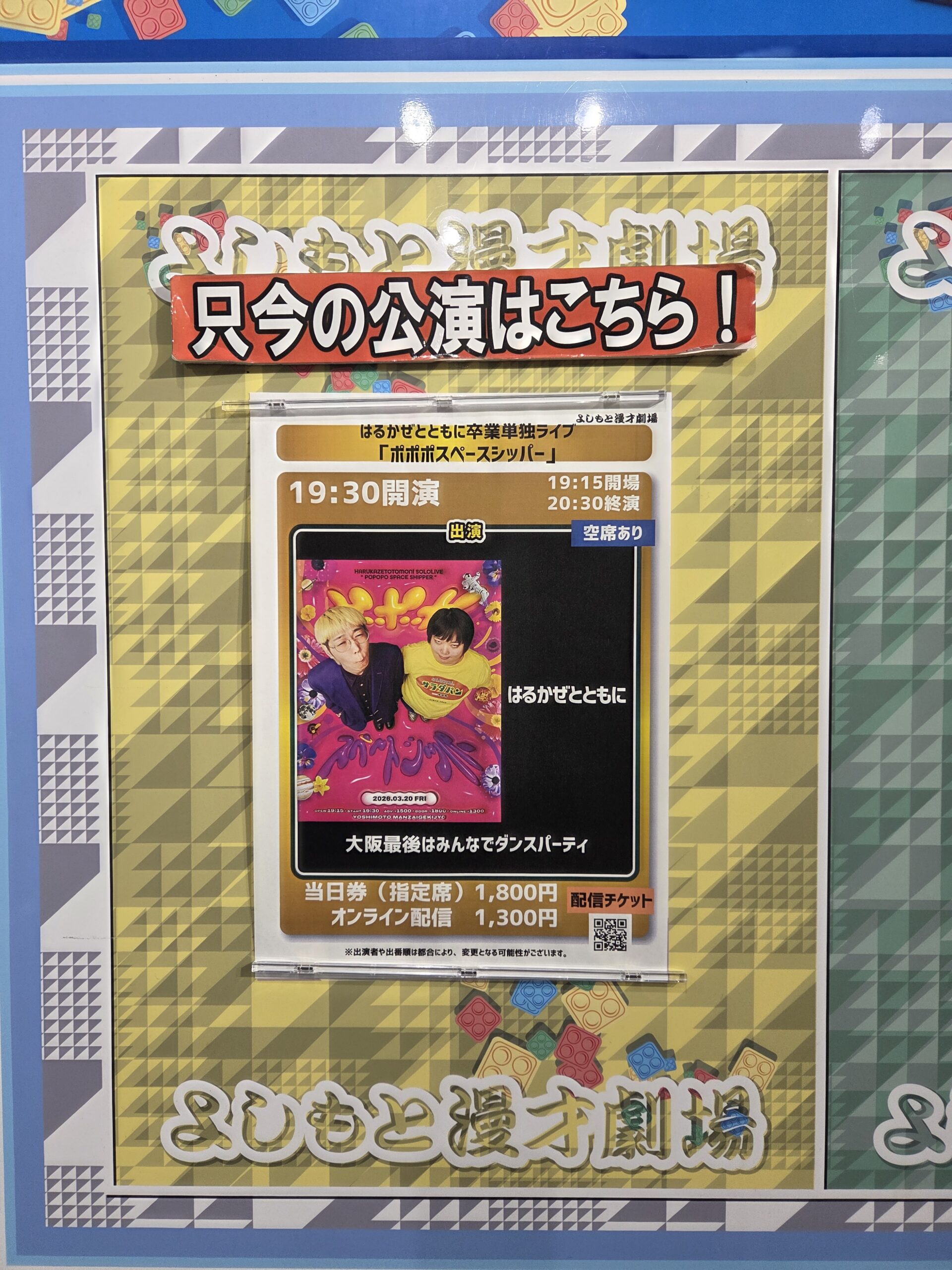 そのうちの1組のはるかぜとともにというコンビの卒業単独でした。劇場通いしてる人ぐらいしか知らないかもしれませんね。